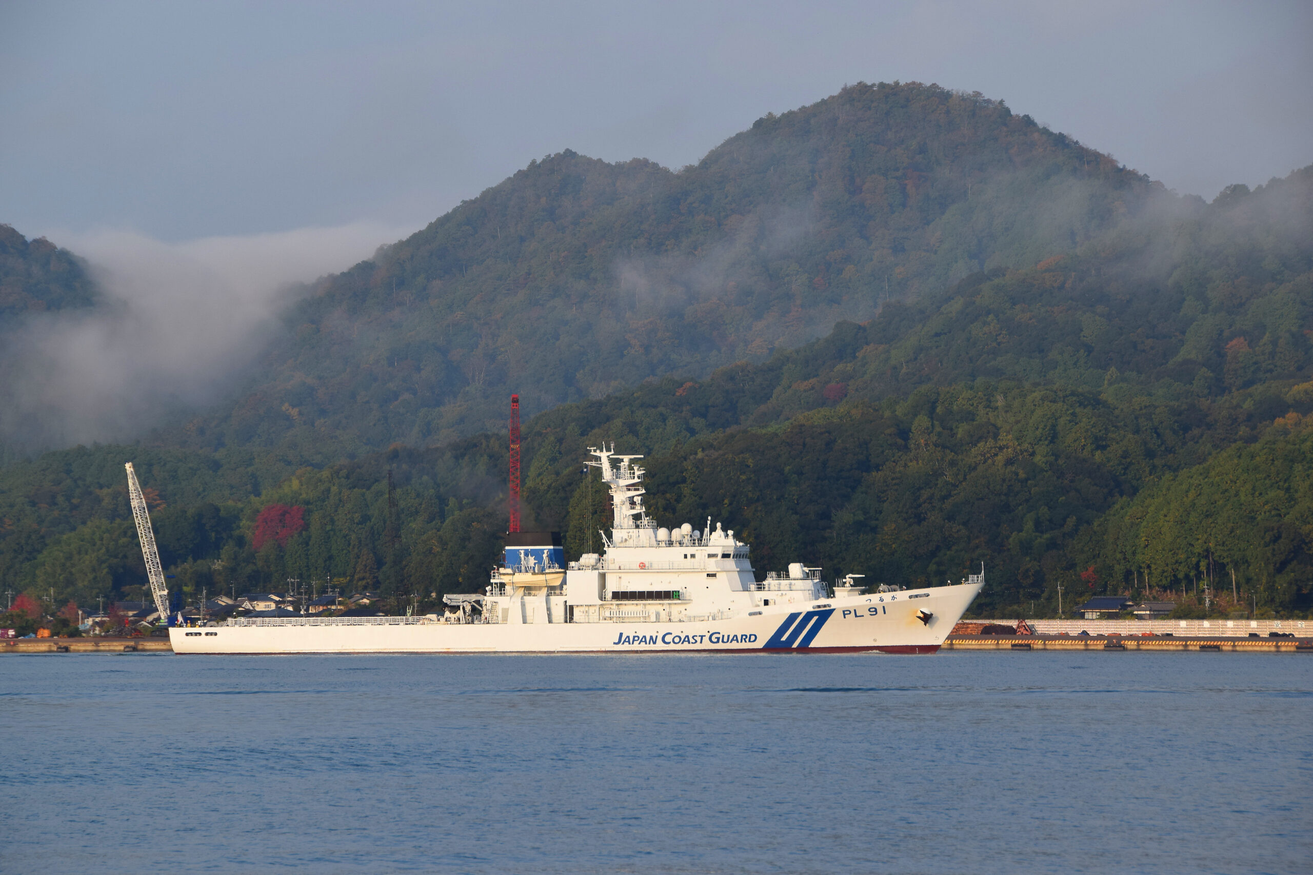 漁港で車を停めて、少し歩いてみる。ちょうど巡視艇が出航するところだった。